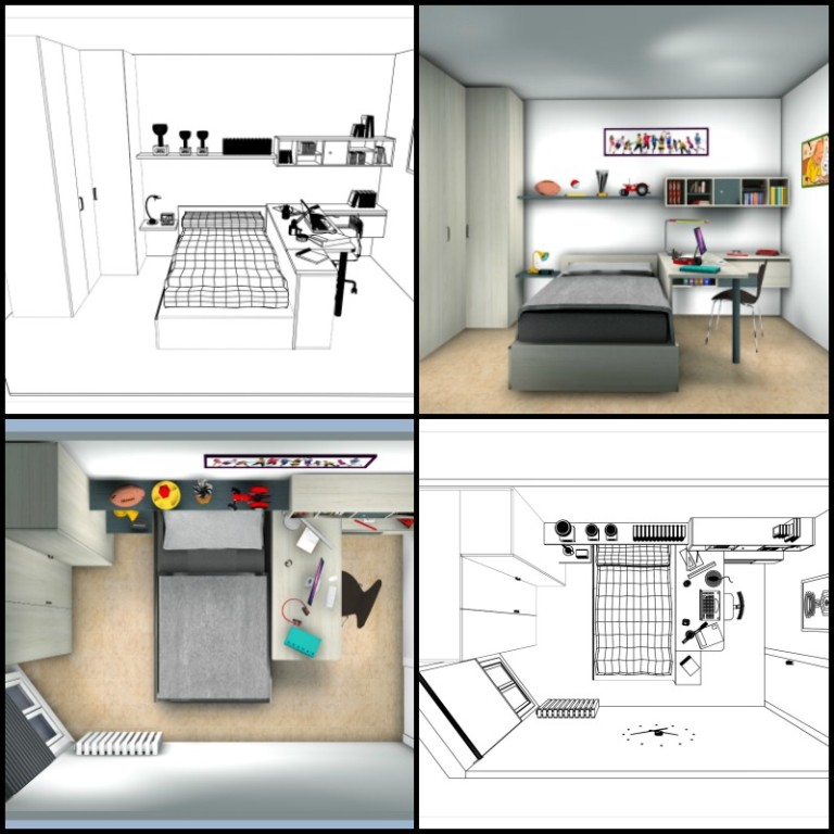 En aquest projecte podem veure com d’una habitació petita hem aprofitat tot l’espai disponible per muntar-la i dissenyar-la per a joves. A mà dreta tocant al llit hem aprofitat per posar una taula d’estudi i a mà esquerra els armaris.